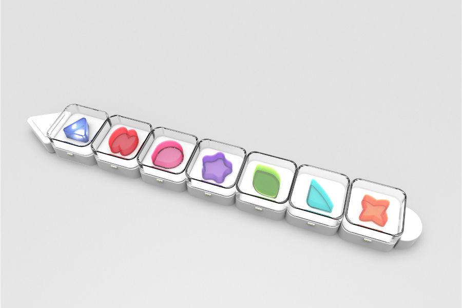 Project 3: MUMINO is a modular educational toy for children aged 5 to 12 that plays music through a domino-like chain reaction, with each of its seven circuit-embedded modules representing a note in the major scale.