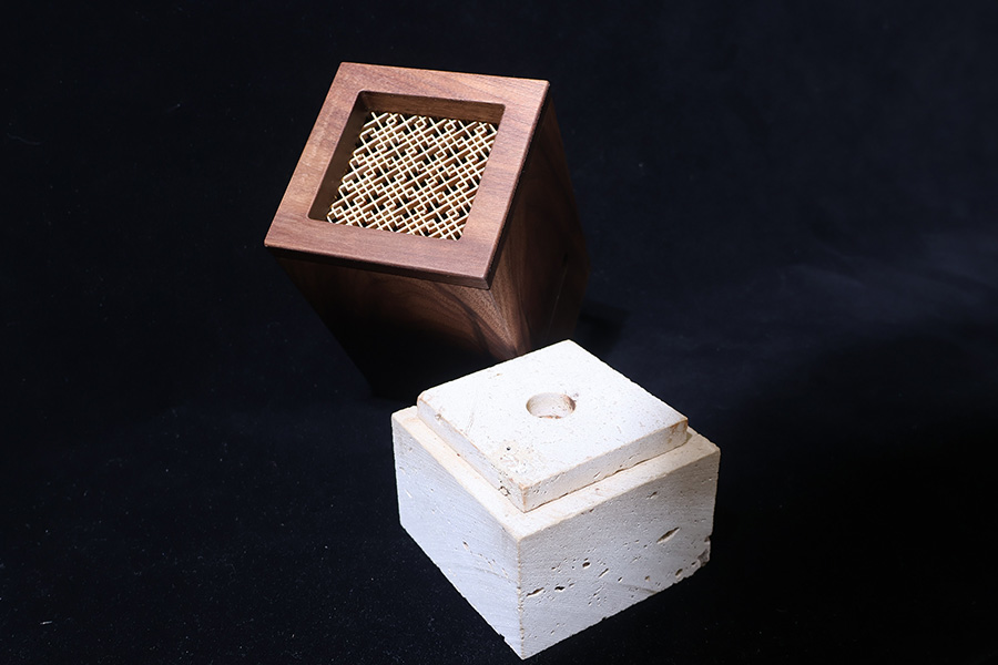 The design of this incense burner incorporates the traditional Wenzhou craft of “bamboo inlay”. At the same time, the shape and size of the incense burner is in line with the traditional Chinese concept of “heaven is round and earth is square”.