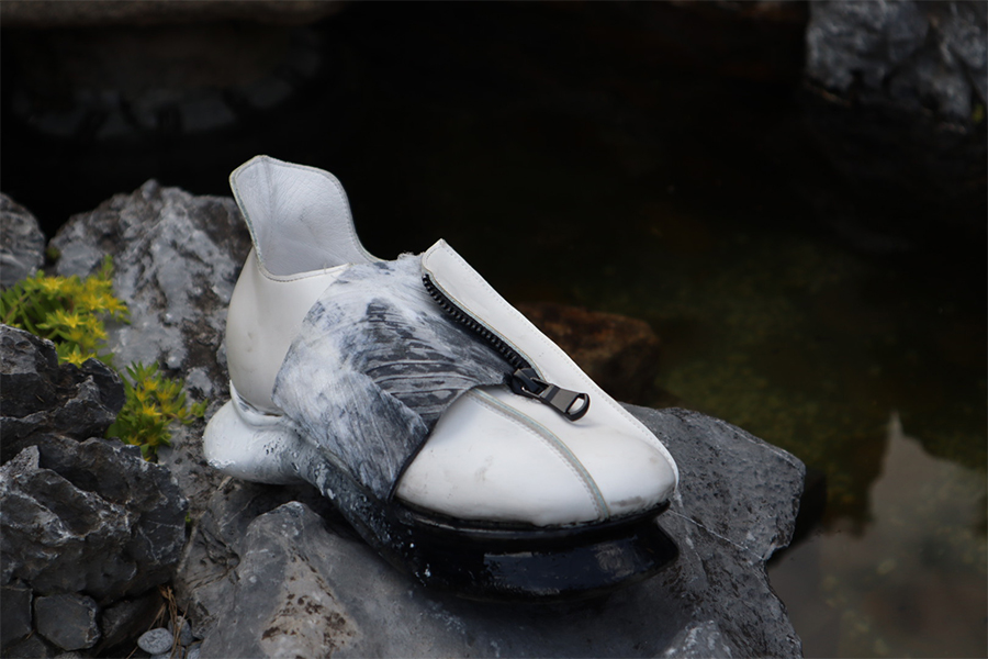 Project 4: As a representative of Chinese culture, ink wash painting is an art of manipulating water. It shows the disposition of its people and the heritage of the nation. Black and white, as the primary tone of the shoe, cater for the simple nature of traditional painting and used the space left unpainted to create a mood of“ endless meaning.” I wanted to use this