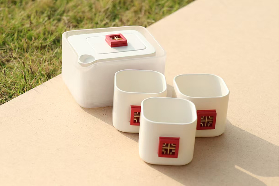 Project 2: Savor is a portable tea set designed to appeal to younger aesthetics while honoring traditional Chinese tea culture. Perfect for indoor and outdoor use, the set includes three tea cups, reflecting the ancient saying that “three people are good for having tea, four for drinks, and two for travel.” The cups have a contemporary straight shape. They feature bamboo inlay handles with traditional patterns, not only for decoration but also to ensure safe handling. The predominant color is white, with a touch of “Viva Magenta” – Pantone’s color of the year 2023 – that embodies nature, vitality, and energy.