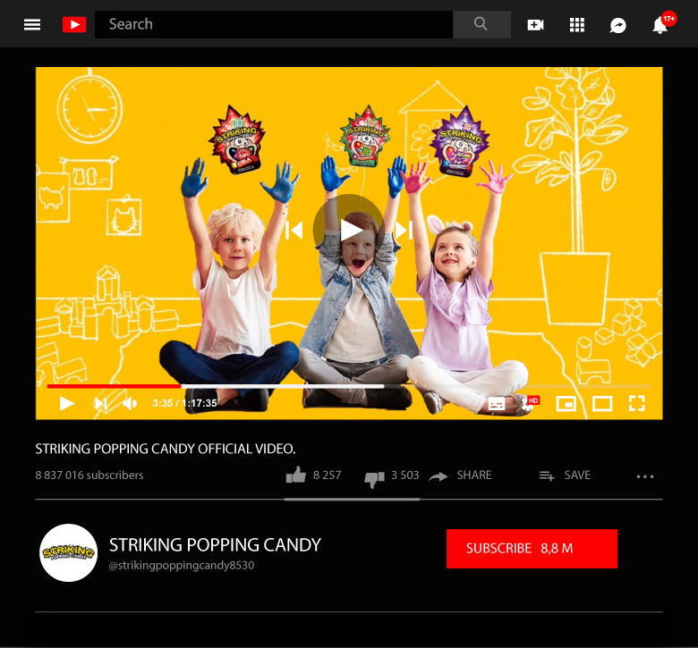 Create a series of social media designs for Striking popping candy, including photography, Instagram designs, video production, sticker design, poster design, installations, etc.