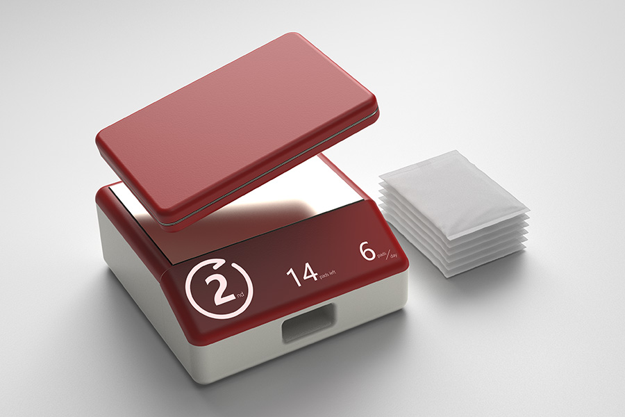 It can automatically record the menstrual period, provide a dry environment for storing sanitary napkins, estimate how many sanitary napkins are stored, and remind users to buy them in time.